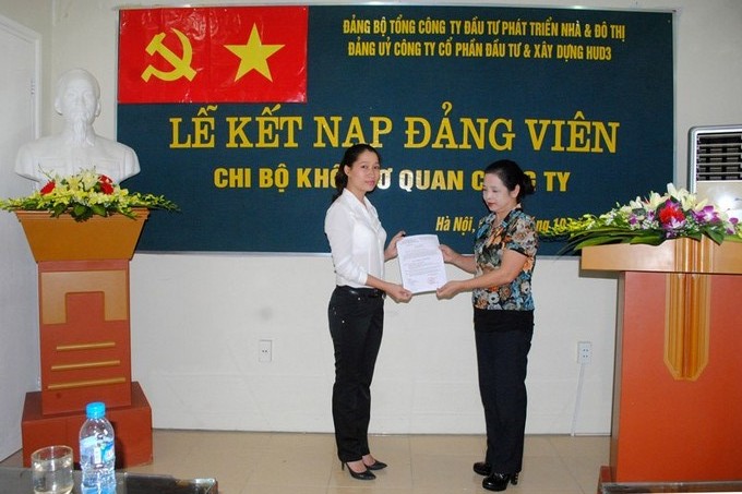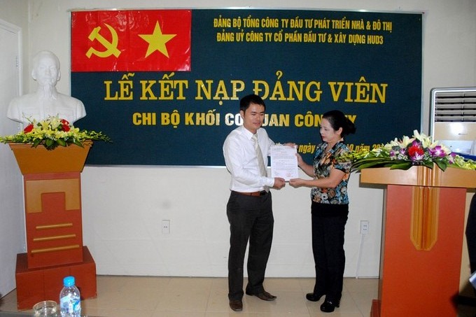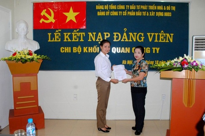 Tại lễ kết nạp, lần lượt 3 đồng chí Cù Anh Tuấn (Cán bộ Ban quản lý dự án công ty), Trần Thị Luyến (Cán bộ ban quản lý dự án HUD3 Tower) và Trần Thị Vân Trang (Cán bộ phòng Kinh doanh) đã đọc “Đơn xin vào Đảng”, nhận quyết định kết nạp Đảng viên của đồng chí Bí thư Đảng bộ Tổng công ty đầu tư phát triển nhà và đô thị từ đồng chí Lê Thị Lan, bí thư Chi bộ khối cơ quan công ty.