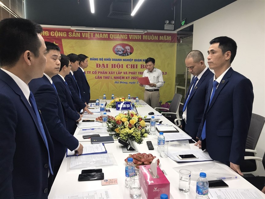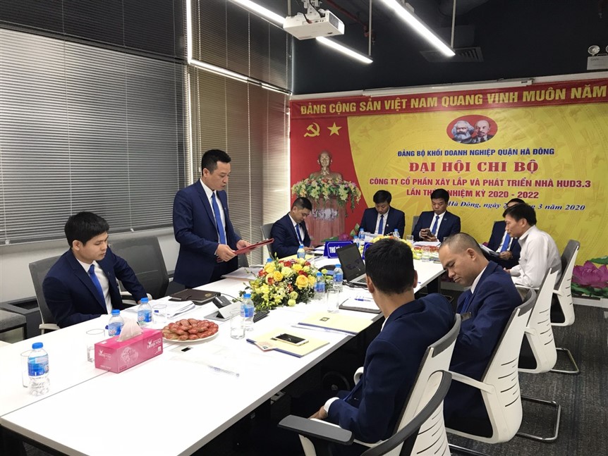 Đồng thời, ngay sau đó Đại hội Chi bộ Công ty HUD3.3 lần thứ I, nhiệm kỳ 2020 – 2022 đã long trọng được tổ chức với sự tham dự của đông đủ các đồng chí Đảng viên đang sinh hoạt tại Chi bộ. Đặc biệt Đại hội vinh dự chào đón sự tham dự của đồng chí Trần Tuấn Sơn – Quận ủy viên, Bí thư Đảng ủy Khối doanh nghiệp quận Hà Đông.