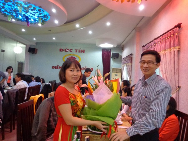 Phát biểu tại buổi lễ, ông Nguyễn Công Định – Chủ tịch Công đoàn Công ty đã trao những bó hoa tươi thắm đồng thời gửi lời chúc tốt đẹp nhất tới các chị em, mong muốn chị em phát huy truyền thống của phụ nữ Việt Nam, đóng góp nhiều hơn nữa vào sự phát triển chung của Công ty. Đáp lại chân tình của Ban lãnh đạo Công ty và của các “đấng mày râu”, đại diện cho phái nữ - bà Hà Thị Bạch Như đã xúc động gửi lời cảm ơn sâu sắc bởi sự quan tâm thiết thực và ý nghĩa này.