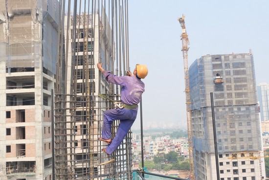 NLĐ làm việc trên cao luôn đảm bảo có dây an toàn