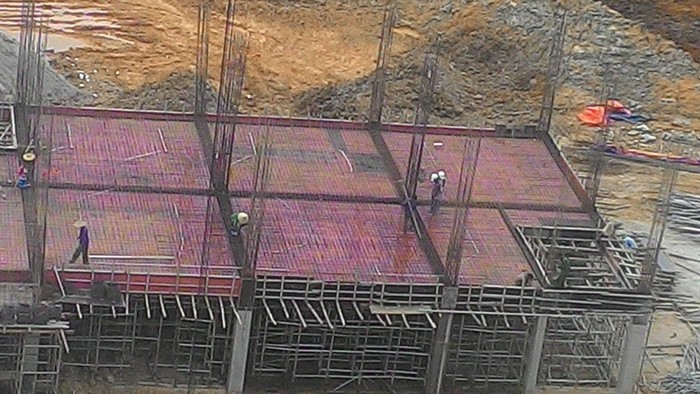 Đối với hạng mục nhà điều hành: Hiện tại đã đổ xong bê tông dầm sàn tầng 2.