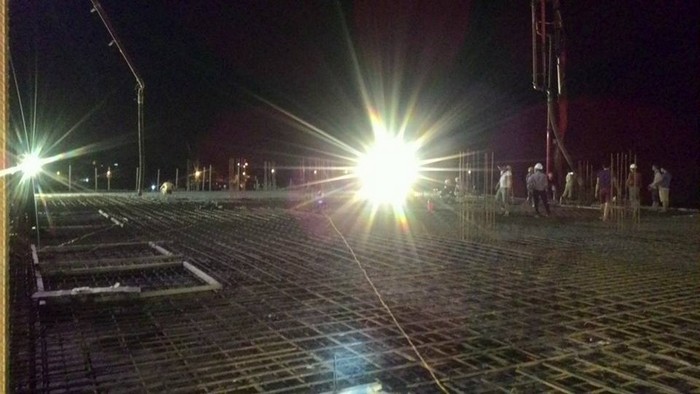 Màn đêm buông xuống nhưng trên công trình vẫn sáng ánh đèn