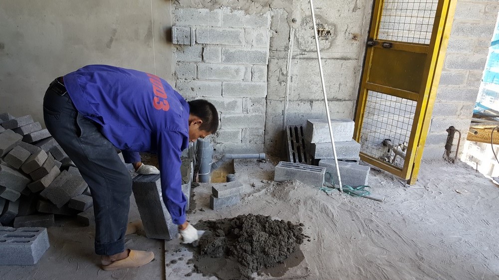 Về công tác ốp lát, hiện đnag tiến hành đồng thời các khu vực căn hộ (từ tầng 3 đến tầng 6), lan can (từ tầng 3 đến tầng 11)… Công tác trát ngoài hiện tại đã cơ bản hoàn thành 80% khối lượng, phấn đấu đến chậm nhất 20/8 xong trát ngoài.