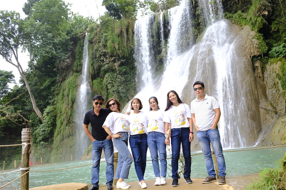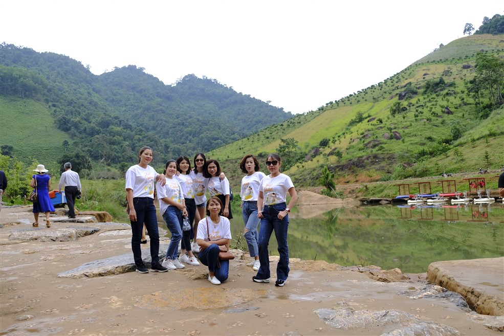Chụp ảnh lưu niệm tại thác Dải Yếm