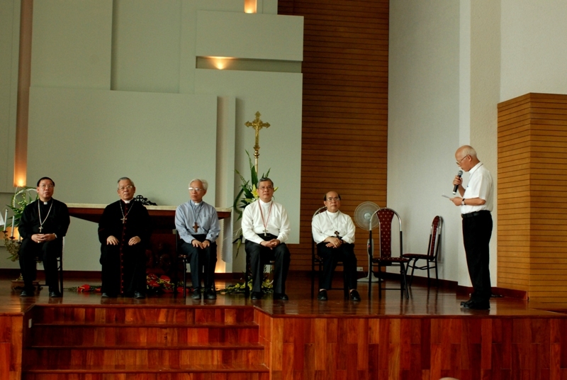 Ngay sau bài chào mừng của Đức Cha Giám đốc, Đức Tổng Phêrô long trọng cử hành nghi thức làm phép ngôi nhà 4 tầng của ĐCV tại cơ sở II – mới xây thêm.