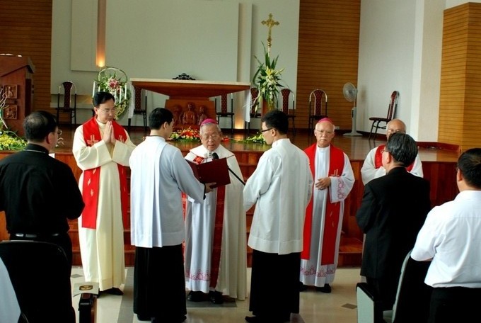 Sau bài giảng, các linh mục trong Ban Giám đốc và Ban giảng huấn tại Đại Chủng viện đã đọc lời tuyên hứa và tuyên xưng đức tin.