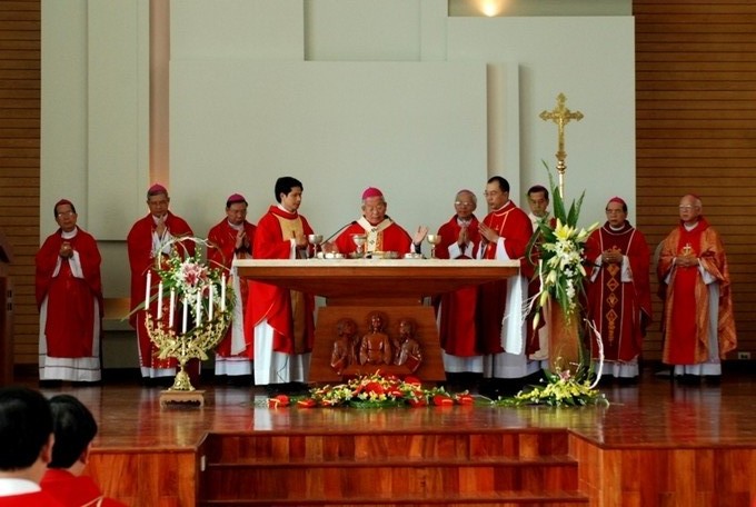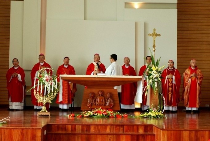 Đỉnh cao của ngày khai giảng là thánh lễ cầu xin ơn Chúa Thánh Thần được diễn ra tại phòng hội của ngôi nhà mới vào hồi 10g30’, do Đức Tổng Giám Mục Phêrô chủ tế.