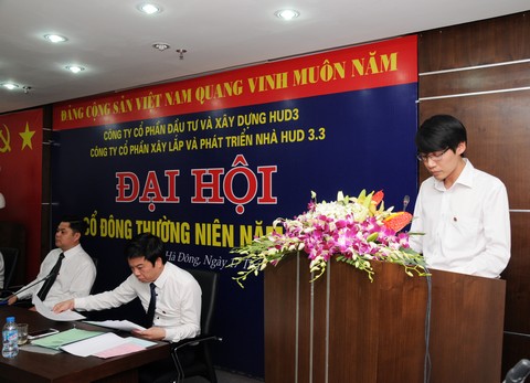 Số đại biểu là cổ đông sở hữu hoặc được uỷ quyền tham dự Đại hội là 26 cổ đông, sở hữu hoặc đại diện sở hữu 1.000.000 cổ phần, chiếm 100 % tổng số cổ phần có quyền biểu quyết của Công ty HUD3.3.