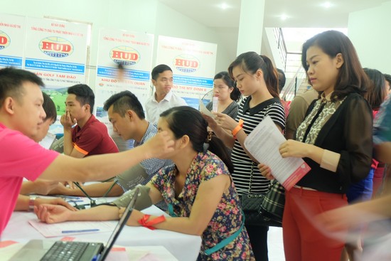 Bí thư ĐTN HUD3 đang hướng dẫn các đoàn viên hoàn tất thủ tục