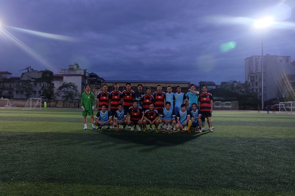 Lãnh đạo Công ty chụp ảnh lưu niệm với đội bóng