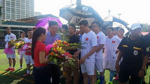 Đ/c Tạ Trọng Tấn - P.TGĐ, CT CĐ TCT tặng hoa đội bóng HUD3