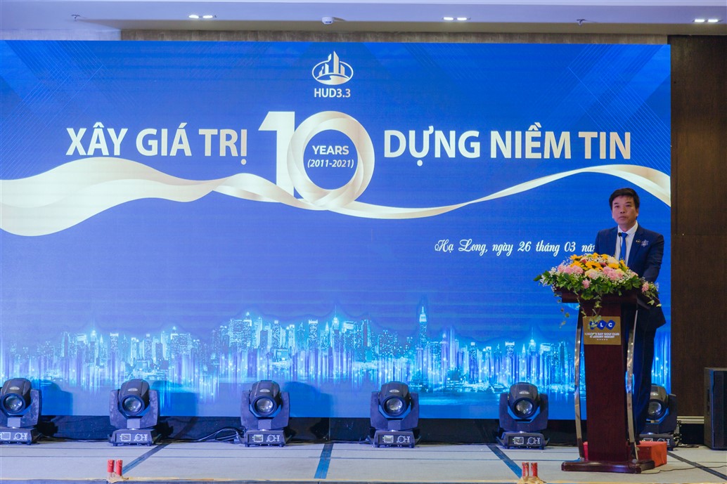 Tuy nhiên, trong chính nghịch cảnh và gian lao như hiện tại, và đặc biệt mốc son kỷ niệm 10 năm con tàu HUD3.3 ra khơi…. Tôi tin tưởng rằng; với sự hợp tác thiện chí, hiệu quả từ quý đối tác, quý cổ đông; Tinh thần đoàn kết một lòng của CBCNV – Người lao động… Công ty HUD3.3 sẽ thực hiện thắng lợi nhiệm vụ SXKD năm 2021 và các năm tiếp theo. Để thương hiệu HUD3.3 - như cánh chim không mỏi, bay cao hơn, bay xa hơn, hiện diện và lưu dấn ấn ở mọi miền đất nước.”