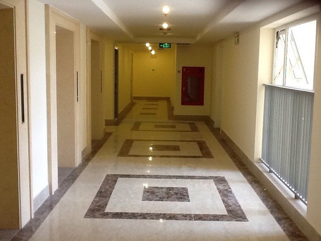 Hình ảnh khang trang, hiện đại tại hành lang trước cửa buồng thang máy
