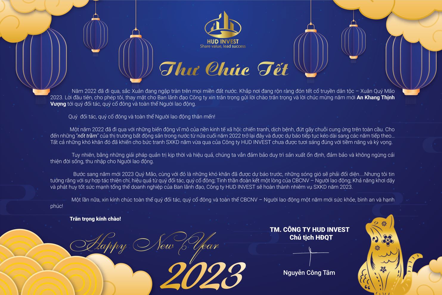Lời đầu tiên, Công ty cổ phần xây dựng T&Đ INVEST xin trân trọng cảm ơn sự phối hợp, hợp tác thiện chí, hiệu quả của Quý cơ quan, Quý khách hàng và Quý đối tác trong thời gian qua.