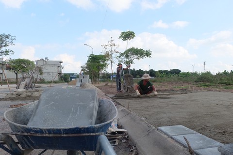 Công tác tập trung san nền chuẩn bị cho lát hè